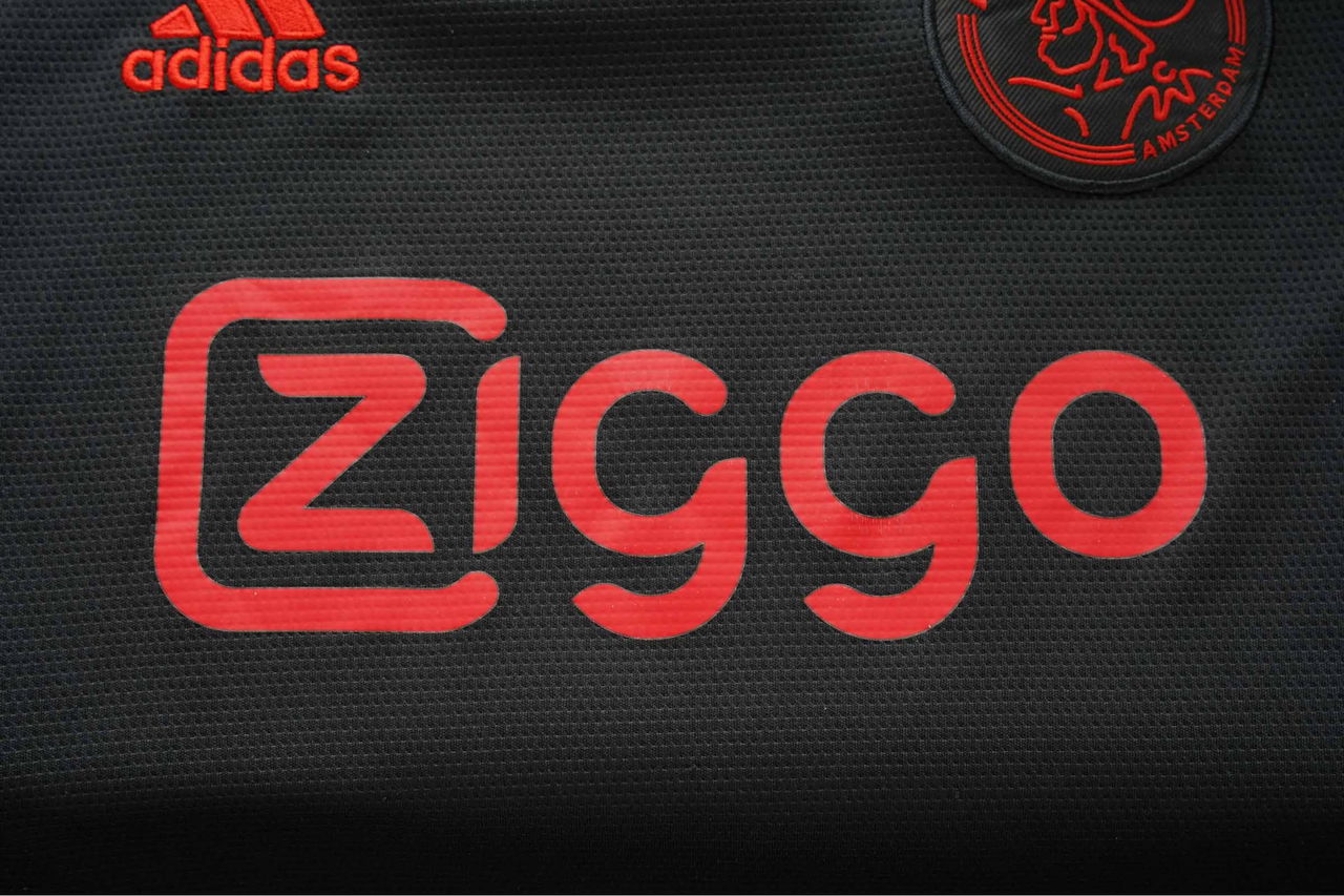 The Ziggo Sponsor of an Ajax 2021/22 "Bob Marley" Third Shirt after 5 times in the washing machine.