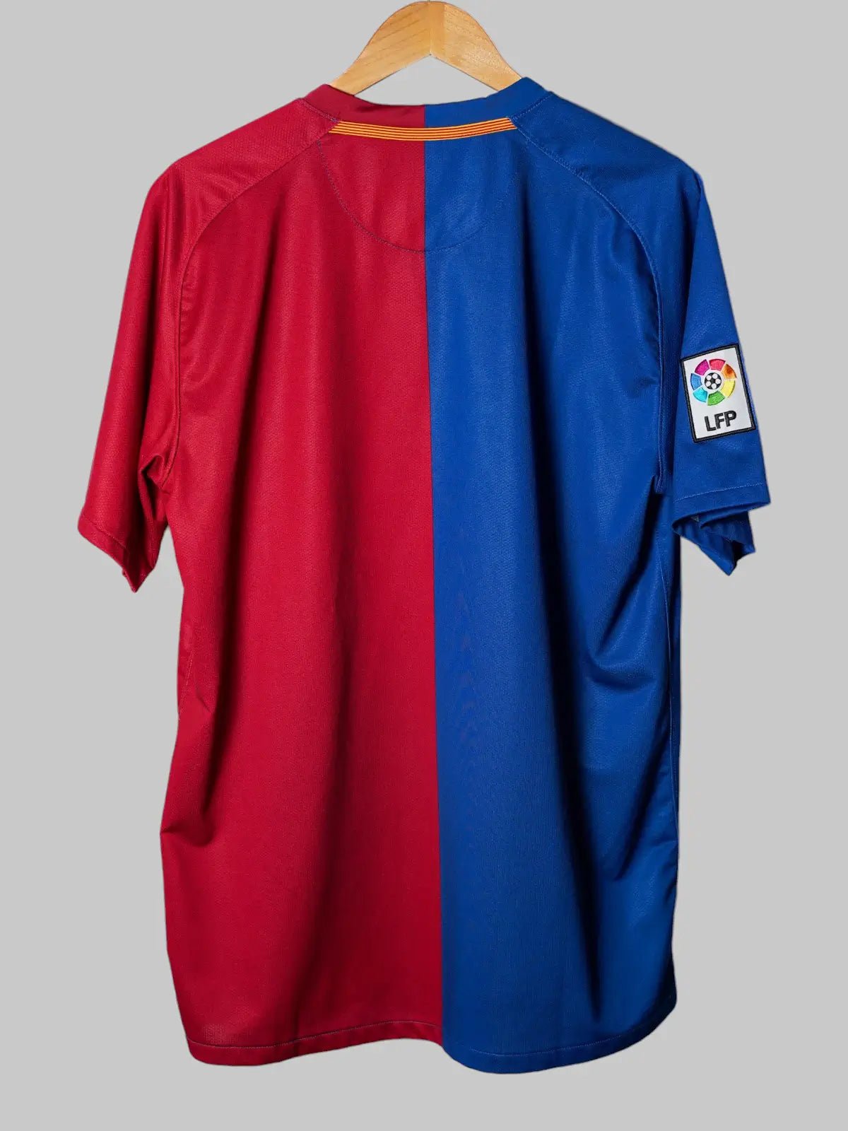 The 2008/09 season marked the dawn of a dynasty — Pep Guardiola’s first year in charge and the birth of Barcelona’s iconic tiki-taka era. Wearing this bold split-design home shirt, Barça swept to a historic treble, with Messi, Xavi, and Iniesta rewriting football’s playbook. This large-sized kit features the classic Unicef sponsor and evokes memories of that 2–0 Champions League Final win over Manchester United in Rome. More than just fabric, it’s a symbol of the season that defined a generation. For collectors, it’s the blueprint of brilliance — pure, precise, unforgettable.